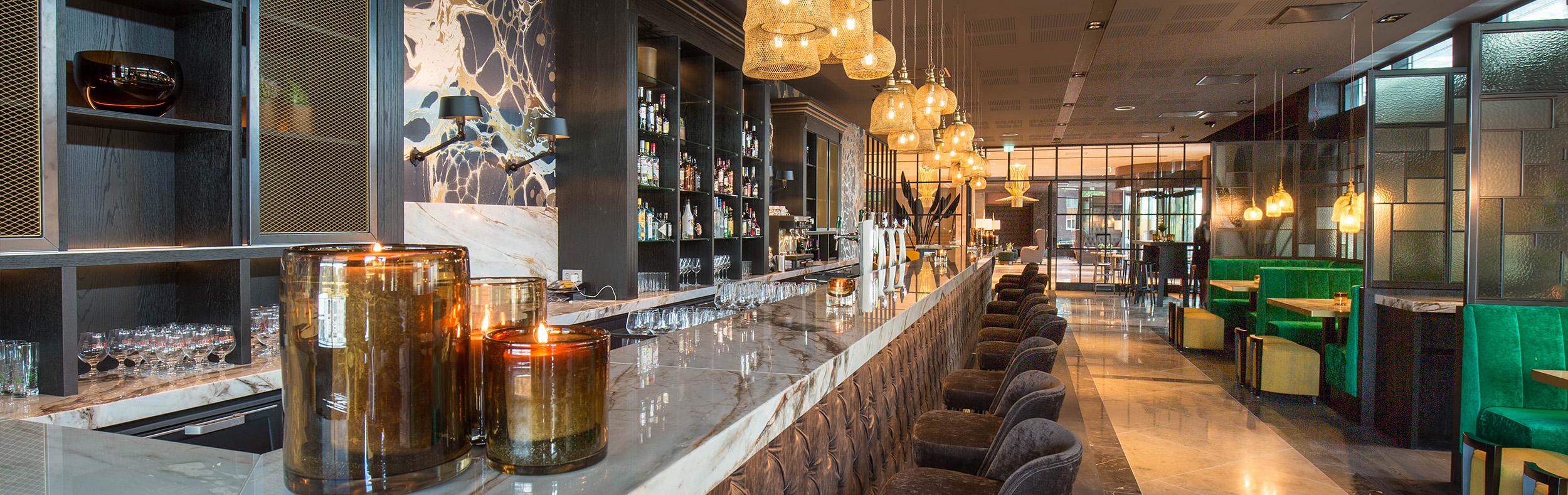 Please be seated, at our pleasant hotel bar at Hotel Enschede. Enjoy a cup of coffee with cake, a drink and a bite, a quick dinner or a fine glass of wine. There will be a large screen during the time important football games or events take place. In that way you can rest assured that you won't miss anything.